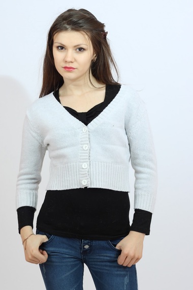 Милое болеро на пуговицах с рукавами 3/4 станет прекрасным дополнением к Вашему осенне-зимнему гардеробу! Выполнено из теплой вязаной ткани серого цвета.