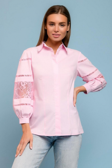 Фото товара 21899, розовая блузка с объемными рукавами и кружевной вставкой